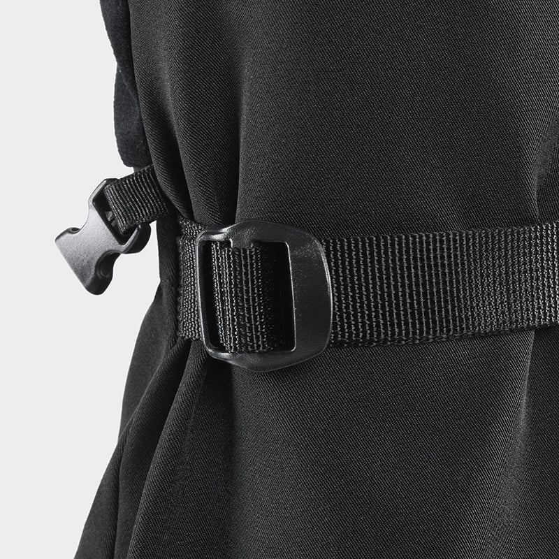 Drawstring allows one-handed operation and seals out cold