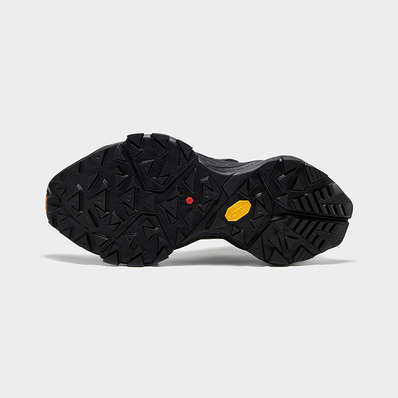 Multi-directional triangle lugs on forefoot provide powerful grip on uphill trails