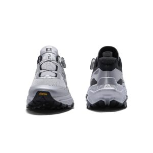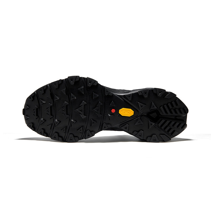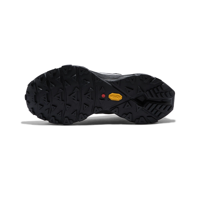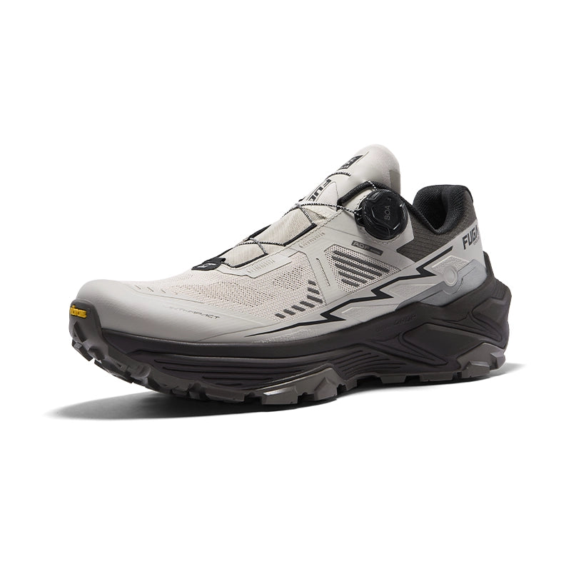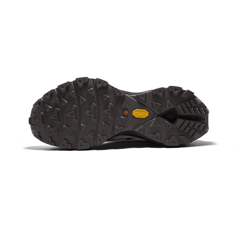 Multi-directional triangle lugs on forefoot provide powerful grip on uphill trails