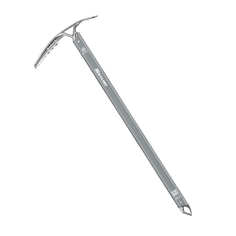 The classic Skyline Ice Axe has a curved shaft for steep terrain. It is suited for mountaineering. high-altitude adventure and glacier crossing.