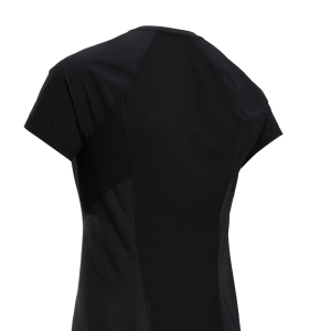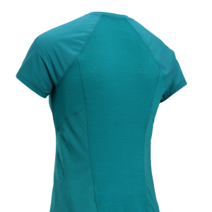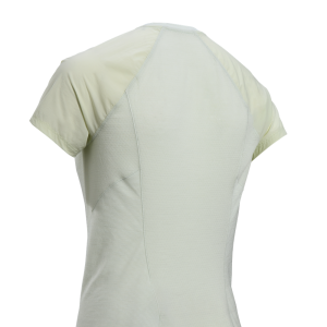 Offset shoulder seams disperse pressure points and minimize chafing.